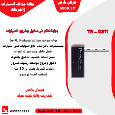 بوابات الالكترونية لمواقف السيارات والتي تتحكم في دخول وخروج السيارات من المواقف و المباني و تمنع دخول اي سيارات غير مصرح لها بالدخول الي المكان